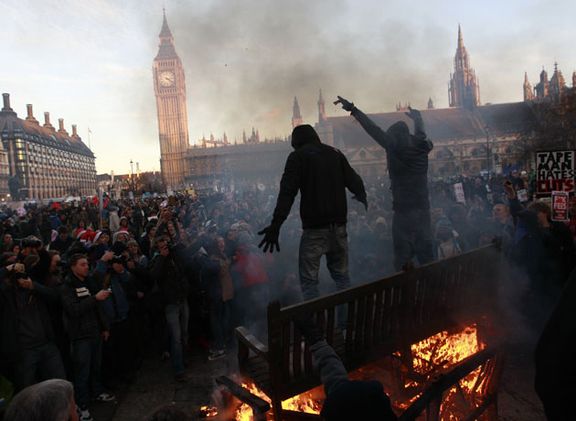 A tandíj háromszorosára emelése ellen tüntetö diákok tegnap este Londonban, a Regent Streeten, kis híján meglincselték Károly herceget és bányarém szépségü nejét, Kamillát. Egy diák a királyi Rolls-Royce nyitva felejtett ablakán keresztül valamivel mellen pöccintette Kamillát, mások pedig fehér festékkel fröcskölték le a királyi automobilt.
