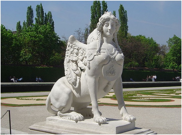 Egy másik Habsburg szfinx szobor a bécsi Belvedere palota bejáratánál