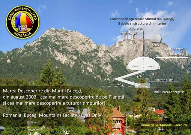 bucegiA Bucsecs-hegység Erdély délkeleti peremén, Brassótól délre helyezkedik el. A keleti vonulat magasabb részén található a Bucsecs-fennsík, melynek látványos alakzatai Bucsecs-szfinxként és Babeleként ismeretesek. Ezen alakzatokhoz közel, a hegy gyomrában bukkantak rá 2003-ban az emberi történelem valószínüleg egyik legfontosabb felfedezésére egy ún. “mélységi fekete müvelet” keretében, s titkolták el az ott találtakat, mivel bizonyítékként szolgáltak volna arra, hogy az emberiség nem a “majomtól származik”, hanem az igazság, ha misztifikálva is, de a bibliai Ószövetségben található.